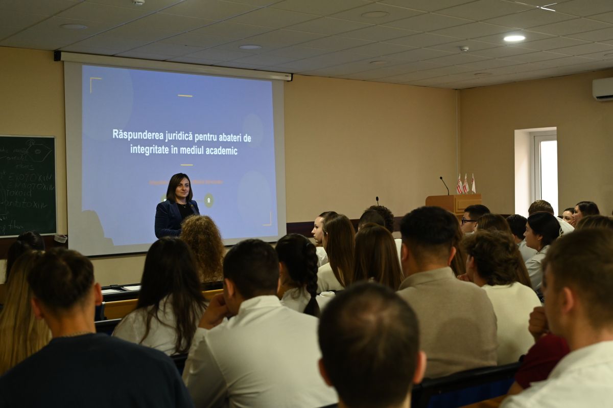 Astăzi, la Universitatea de Stat de Medicină şi Farmacie „Nicolae Testemiţanu” din Republica Moldova au fost desfășurate prelegeri în cadrul cursului „Etica și integritatea academică” pentru toți studenții de la programele de studii de licență și integrate din anii I-III, în contextul Campaniei de informare și conștientizare „Integritatea e alegerea ta”.